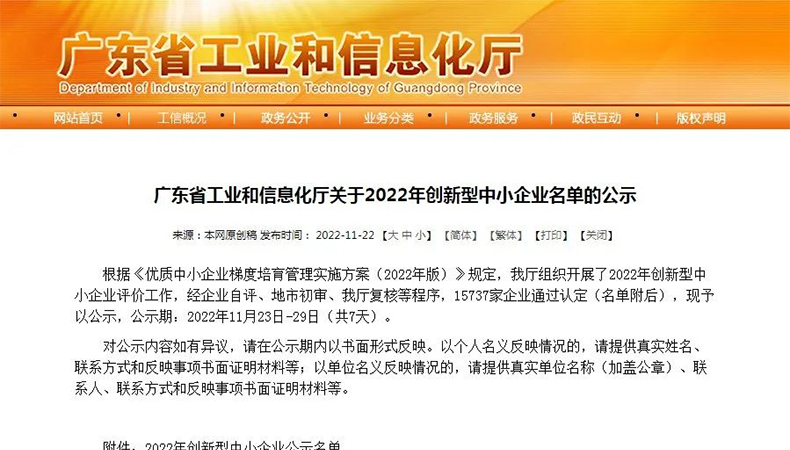 榮冠公司榮獲廣東省“2022年創(chuàng)新型中小企業(yè)”認(rèn)定!
